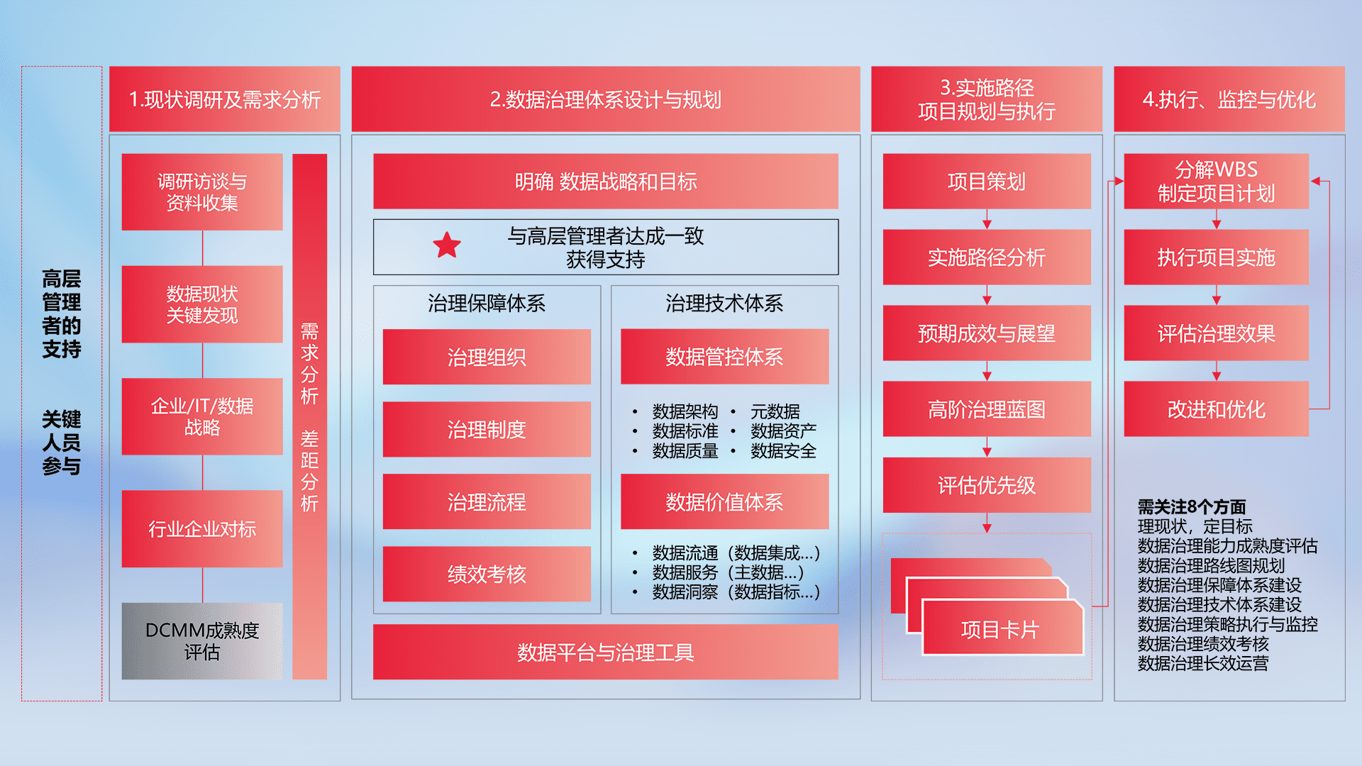 制定并执行统一的数据标准,,,,规范数据定义和格式,,,消除冗余和不一致性,,,,实现跨部门和跨系统的数据一致性,,为企业提供标准化的数据基础。。。